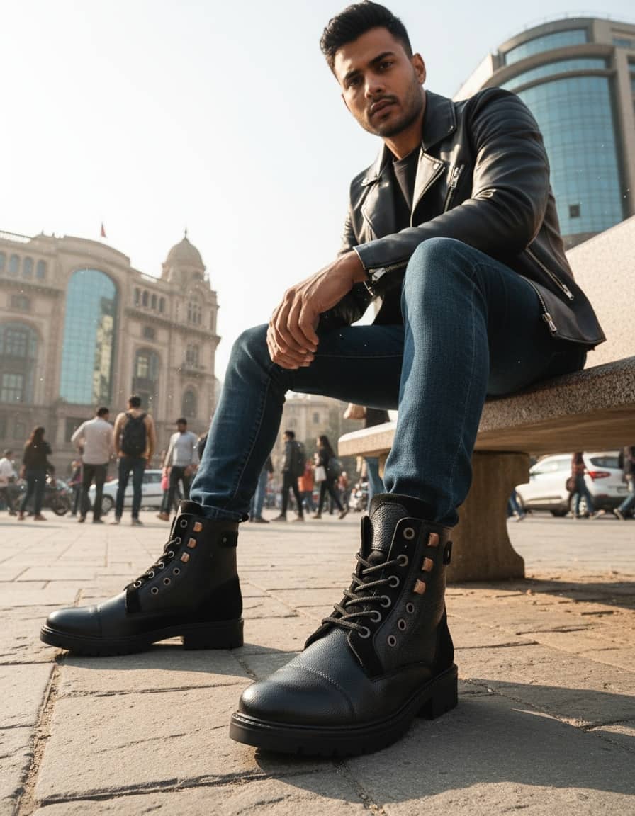 Bacca Bucci Men's DRAGON Splashproof Leather Classic Fashion Boots for Biking Trekking & Hiking | 6 Inches | Ankle Height