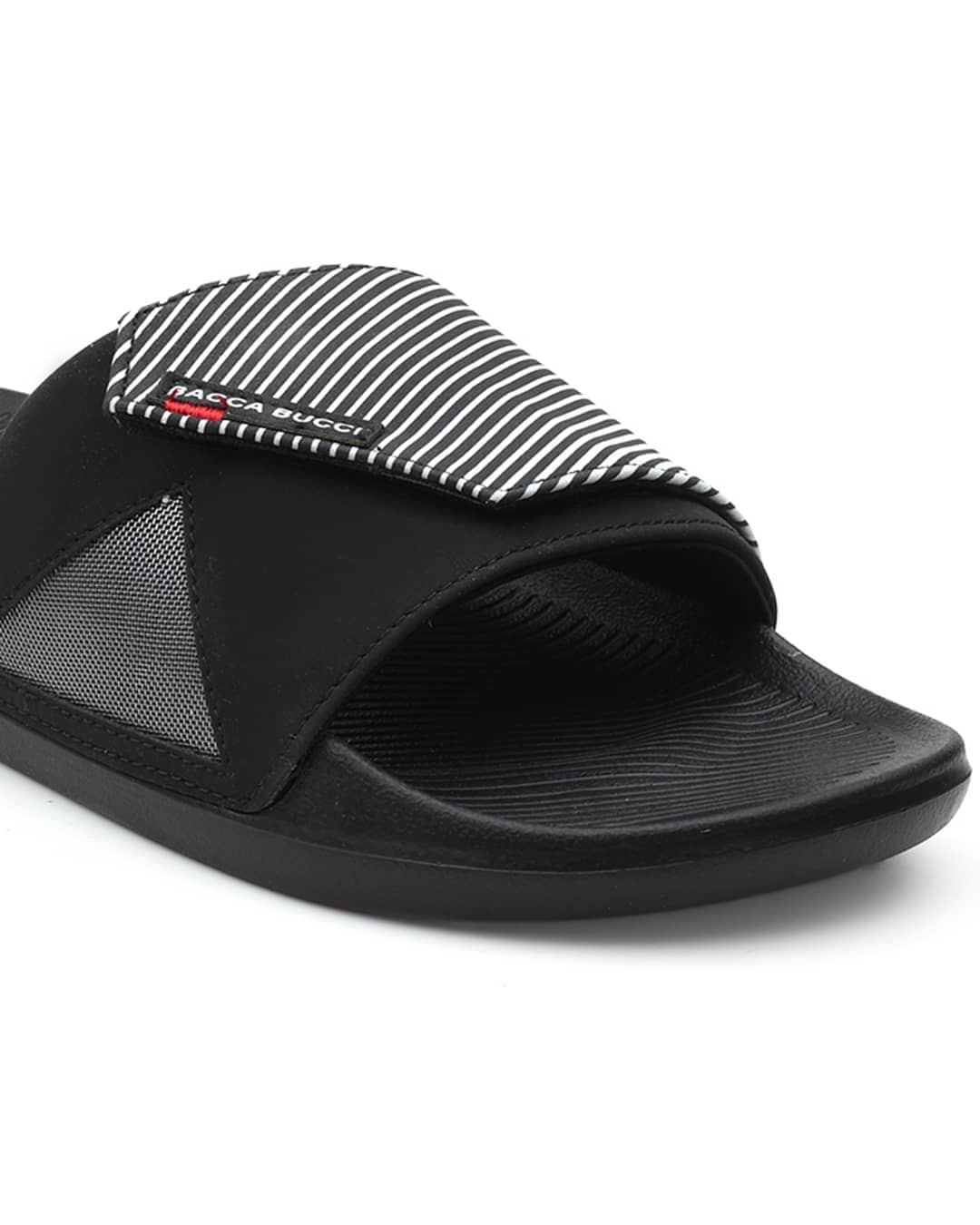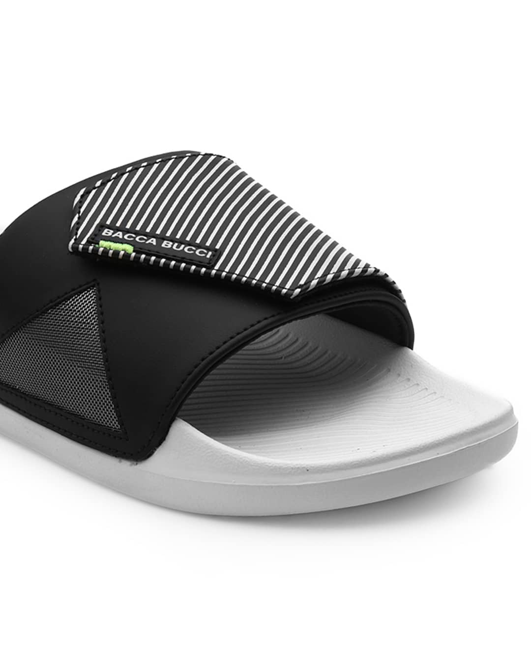 - Modern Striped Strap With Breathable Mesh Panel: A stylish diagonal-stripe upper paired with a side mesh insert gives the slides a sporty, futuristic look while ensuring enhanced airflow and comfort.