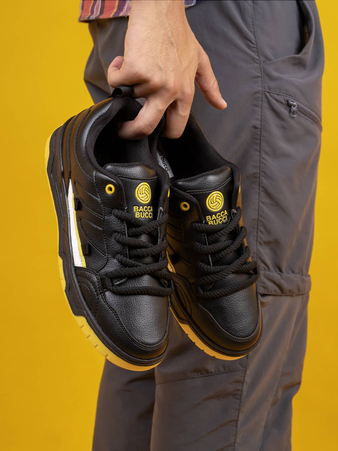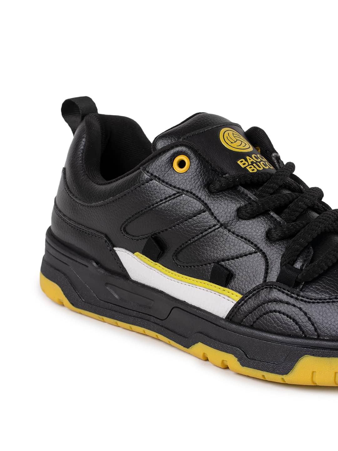 Sleek Aesthetic with Bold Contrast: The Bacca Bucci Jackson Low Top Sneakers captivate with their bold black exterior, elevated by contrasting yellow accents that add a dynamic edge to your style. These shoes embody modern street style, seamlessly blending with any outfit while standing out in sophistication.